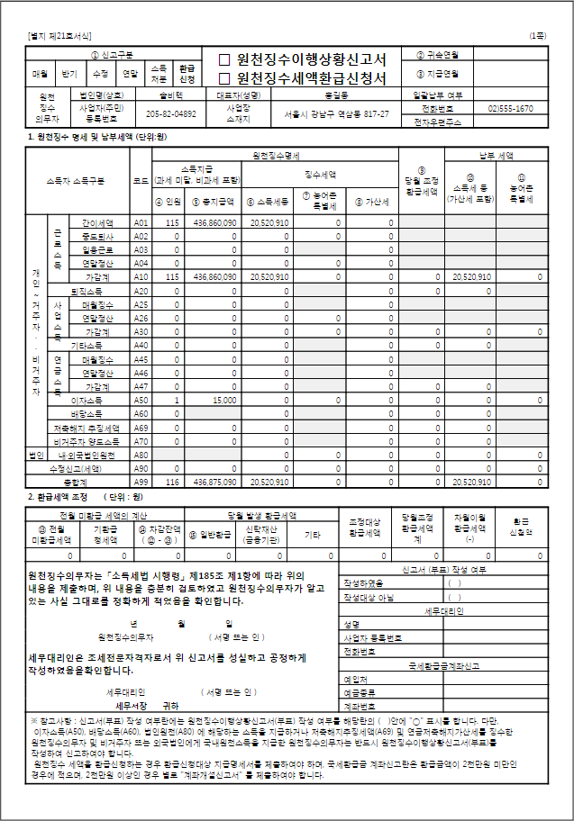 원천징수 이행상황신고서